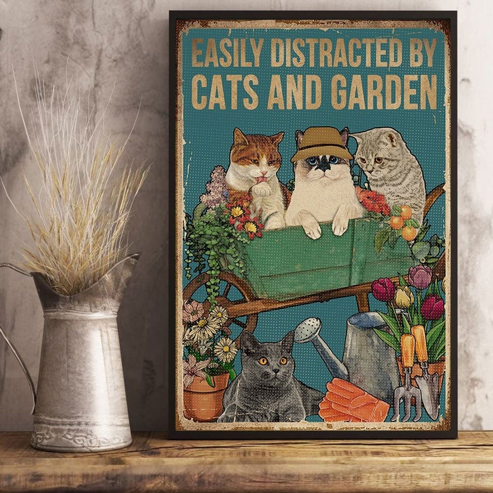 Póster "Me distraigo fácilmente con los gatos y la jardinería", lienzo