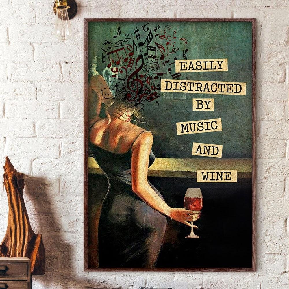 Fácilmente distraído por la música y el vino, póster de vino, lienzo
