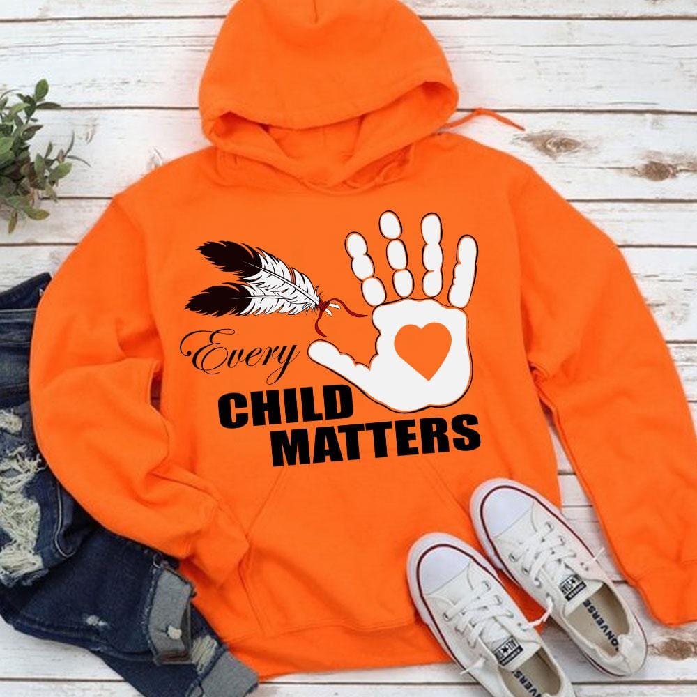 Cada niño importa, sudadera con capucha del día de la camisa naranja, escuelas residenciales, mano indígena