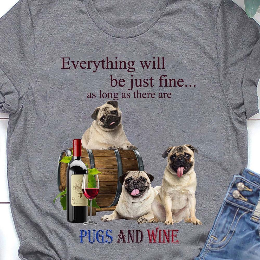 Todo estará bien mientras haya carlinos y vino, camisetas de vino