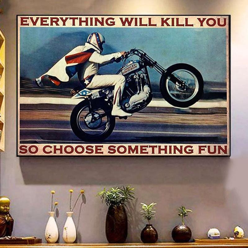 Todo te matará, así que elige algo divertido Póster de motocicleta, lienzo