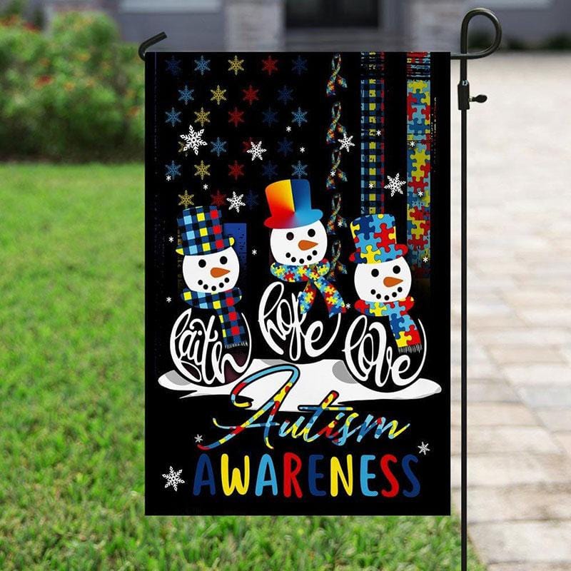 Bandera de fe, esperanza y amor, muñeco de nieve navideño, bandera de concienciación sobre el autismo, bandera para casa y jardín