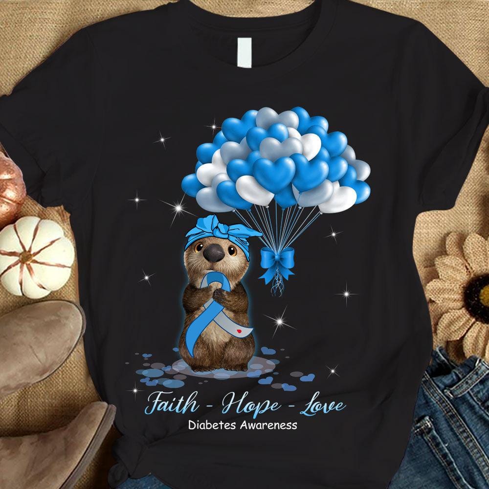 Camiseta de concienciación sobre la fe, la esperanza y el amor para los supervivientes de la diabetes, globo con forma de ratón