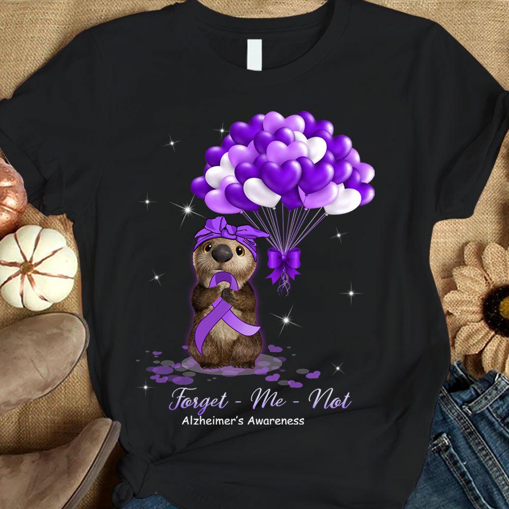 Camiseta de concienciación sobre el Alzheimer con globo morado y mensaje de fe, esperanza y amor