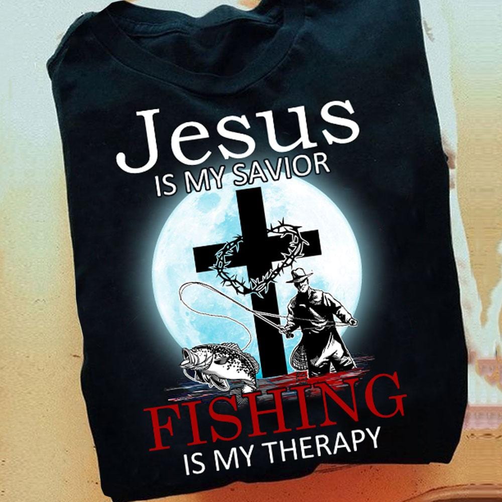 Jesús es mi salvador La pesca es mi terapia, camisetas de pesca