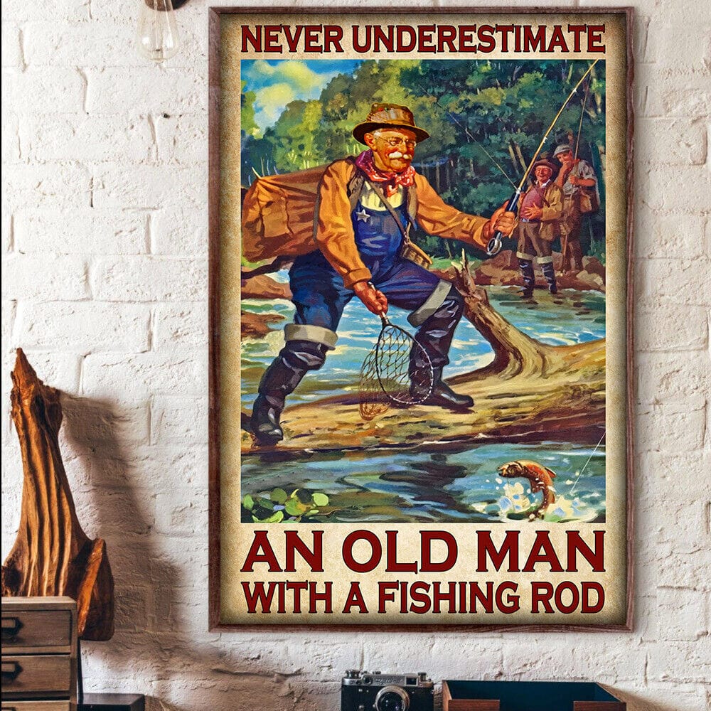 Pesca Nunca subestimes a un anciano con una caña de pescar Póster de pescador, lienzo