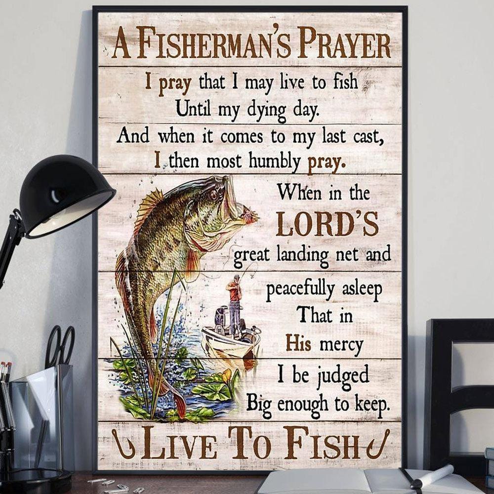 Póster de pesca en lienzo: la oración de un pescador: "Vive para pescar"
