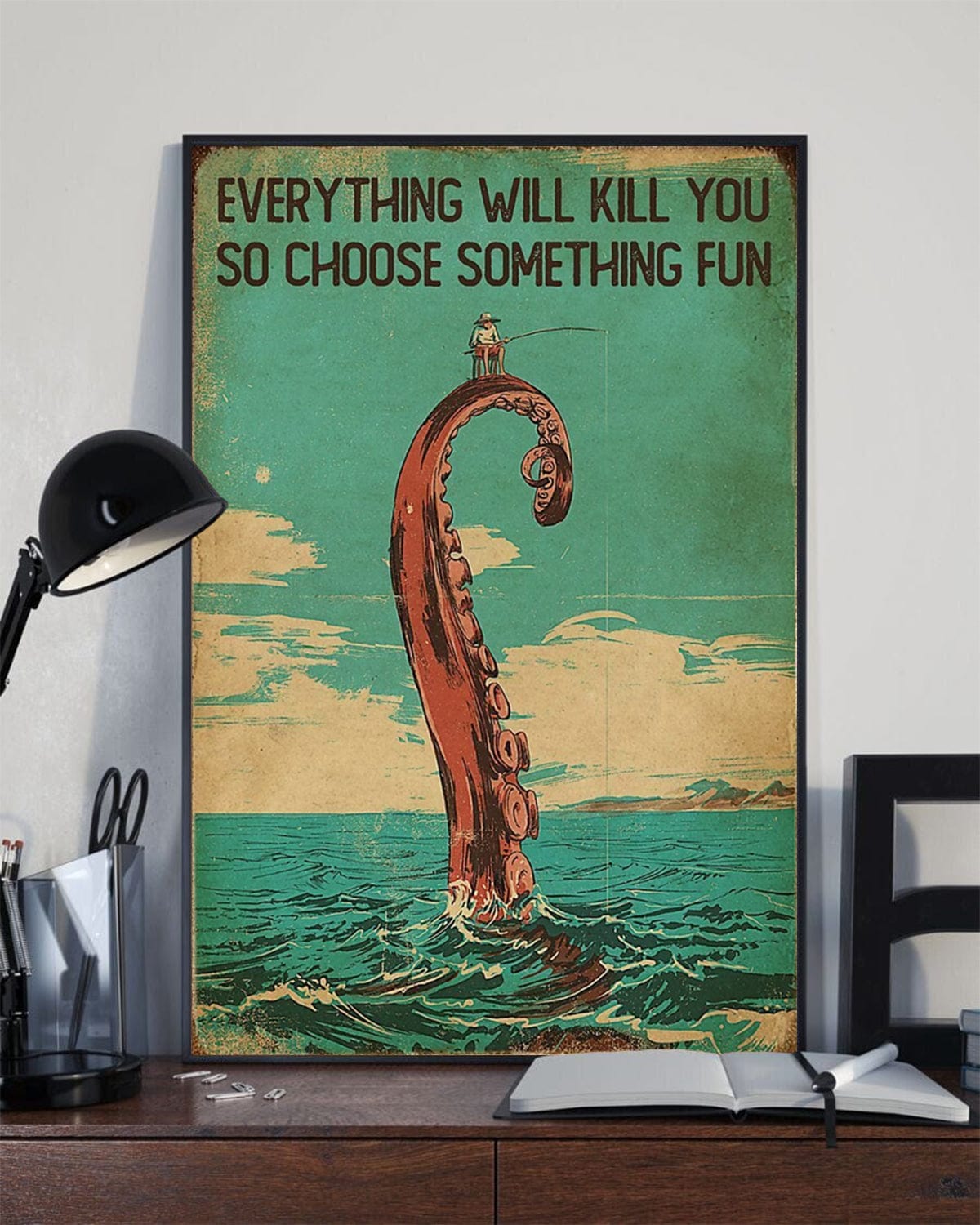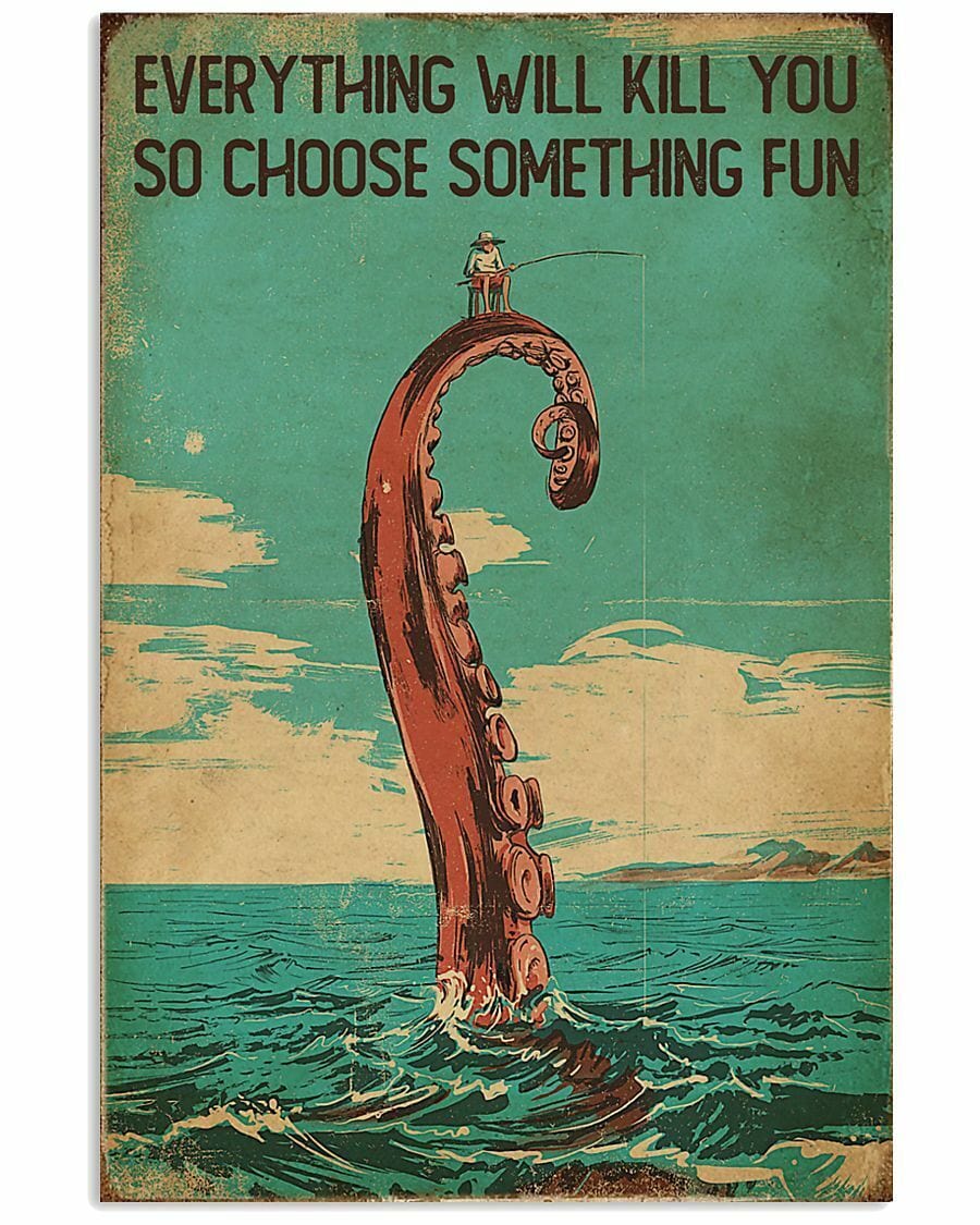 Póster vintage de pesca: Todo te matará, así que elige algo divertido, lienzo