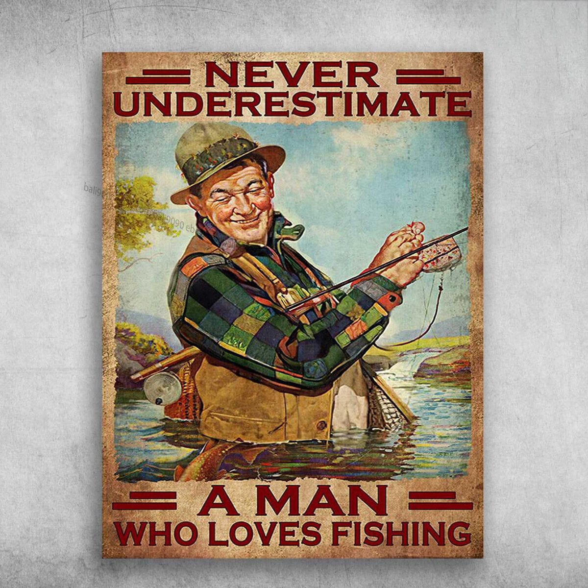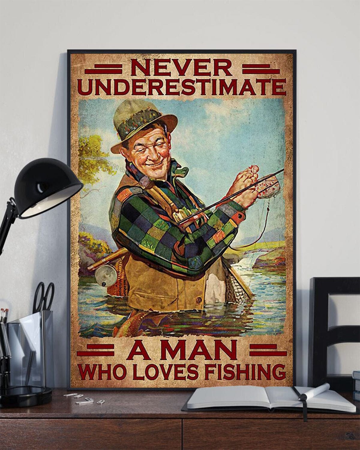 Nunca subestimes a un hombre que ama pescar Póster de anciano pescando, lienzo