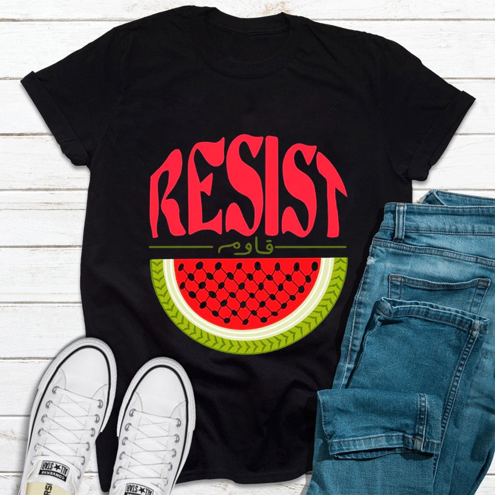 Camiseta con la bandera de la sandía que resiste y defiende Palestina y Gaza libre