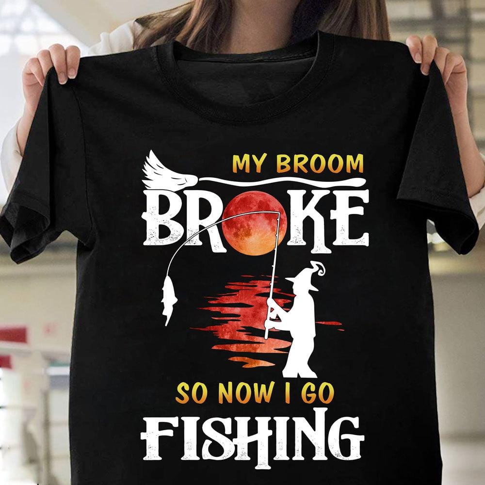 Camisetas de pesca divertidas para Halloween: se me rompió la escoba y ahora voy a pescar