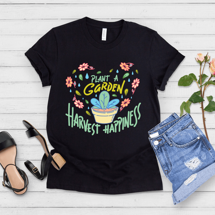 Camiseta de jardinería Planta un jardín y cosecha felicidad