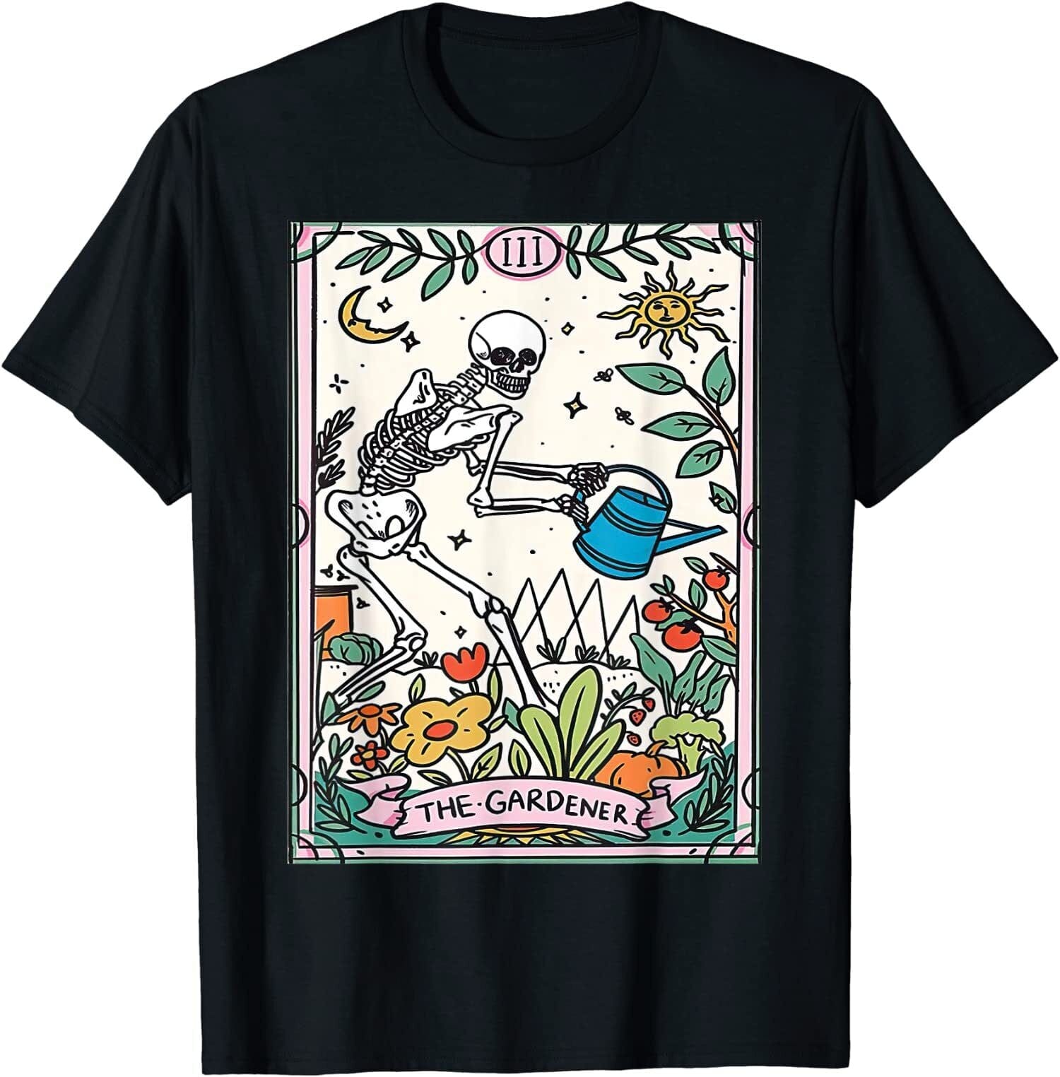 Camiseta de esqueleto de jardinería de brujas místicas con cartas del tarot del jardinero