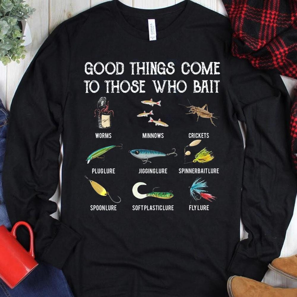 Sudadera con capucha y camisetas "Las cosas buenas les llegan a quienes pescan con cebo"
