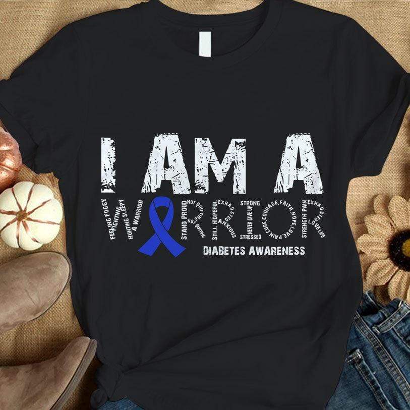 Soy un guerrero, cinta azul, camiseta de apoyo para la concienciación sobre la diabetes