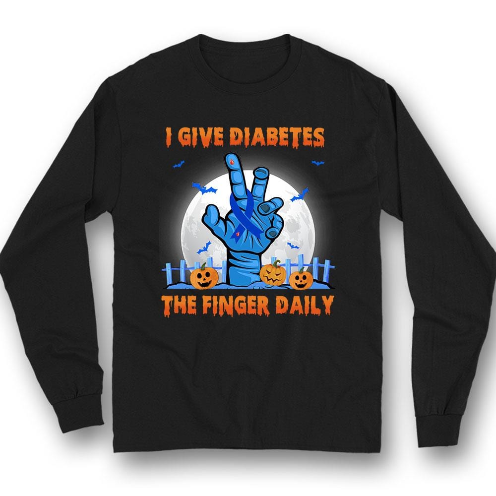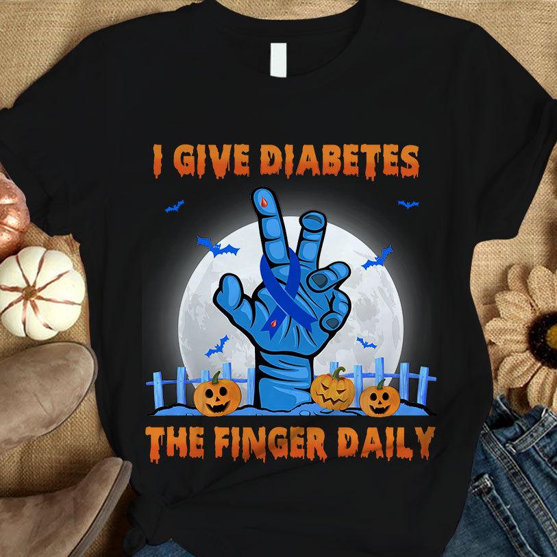 Camiseta de apoyo a la concienciación sobre la diabetes con el dedo índice "Doy un dedo todos los días" y lazo azul para Halloween