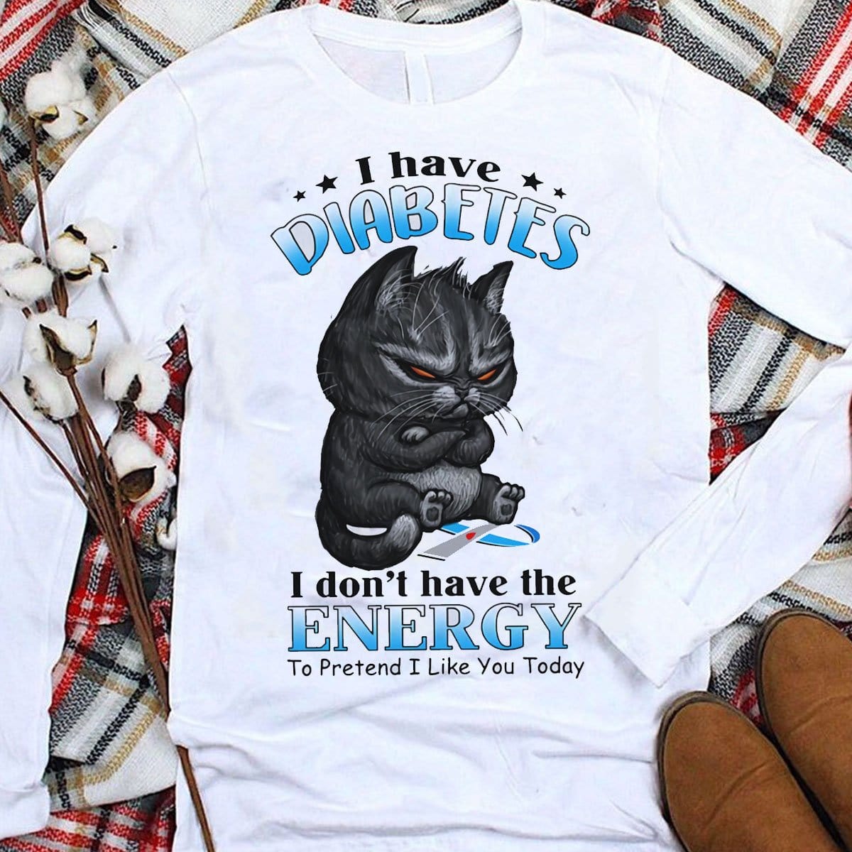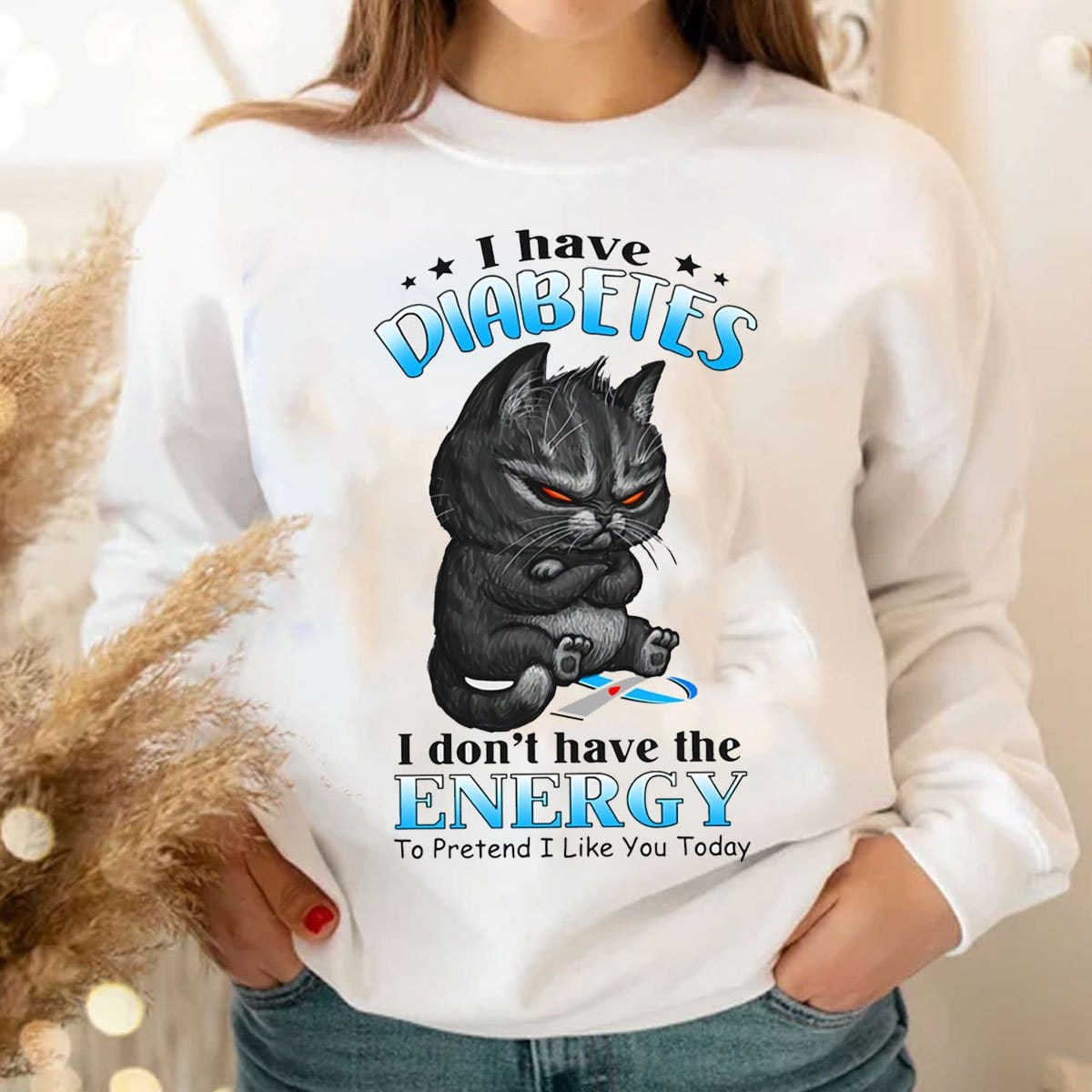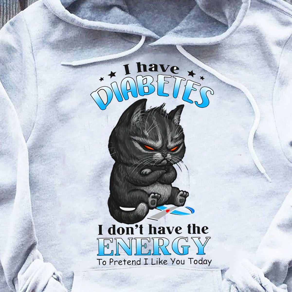 Tengo diabetes, no tengo energía para fingir que me gustas hoy Sudadera con capucha y camiseta de gato
