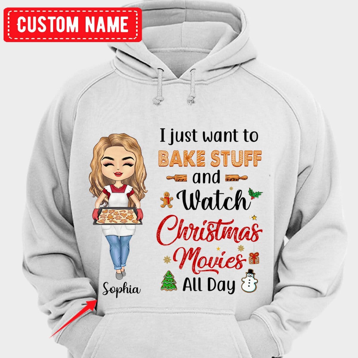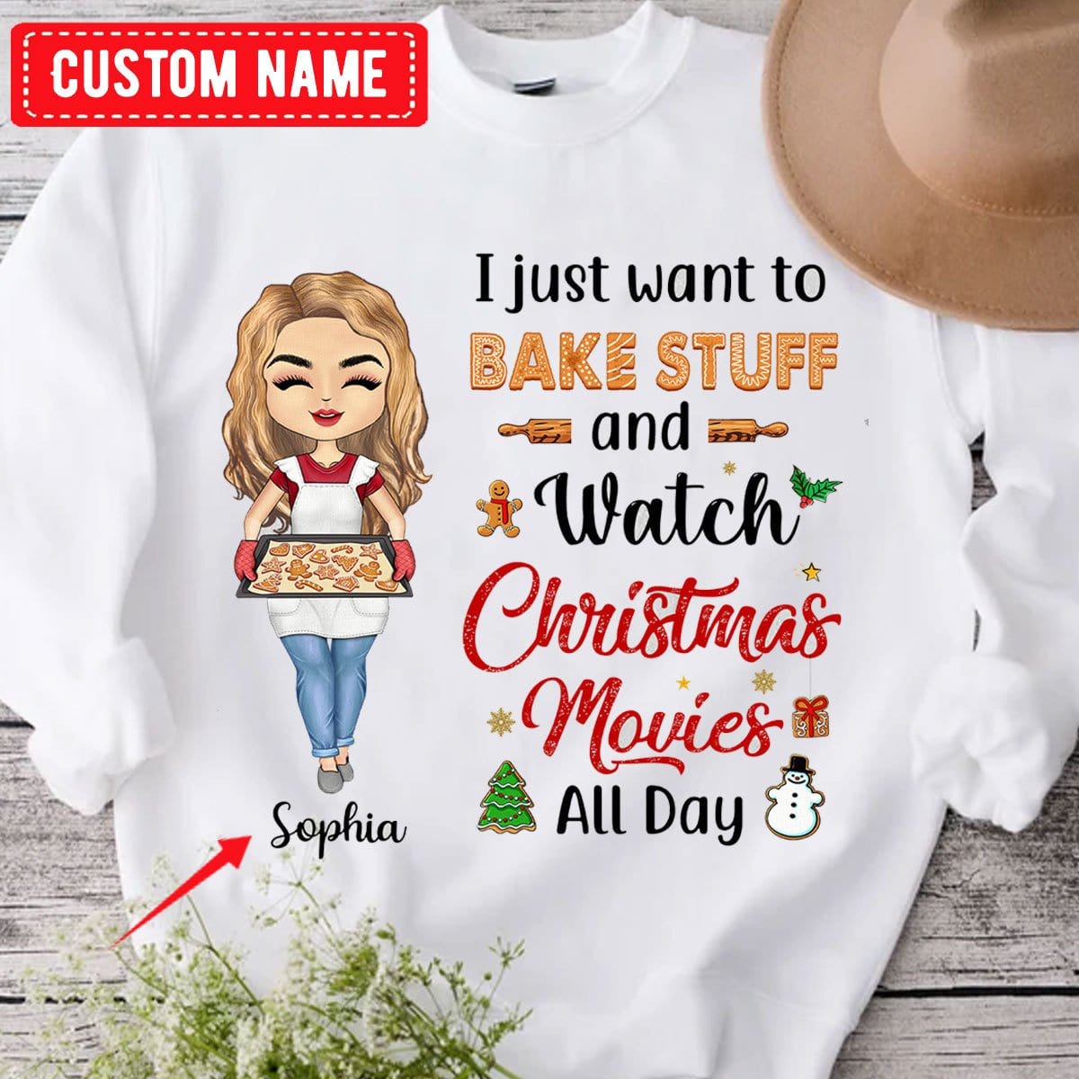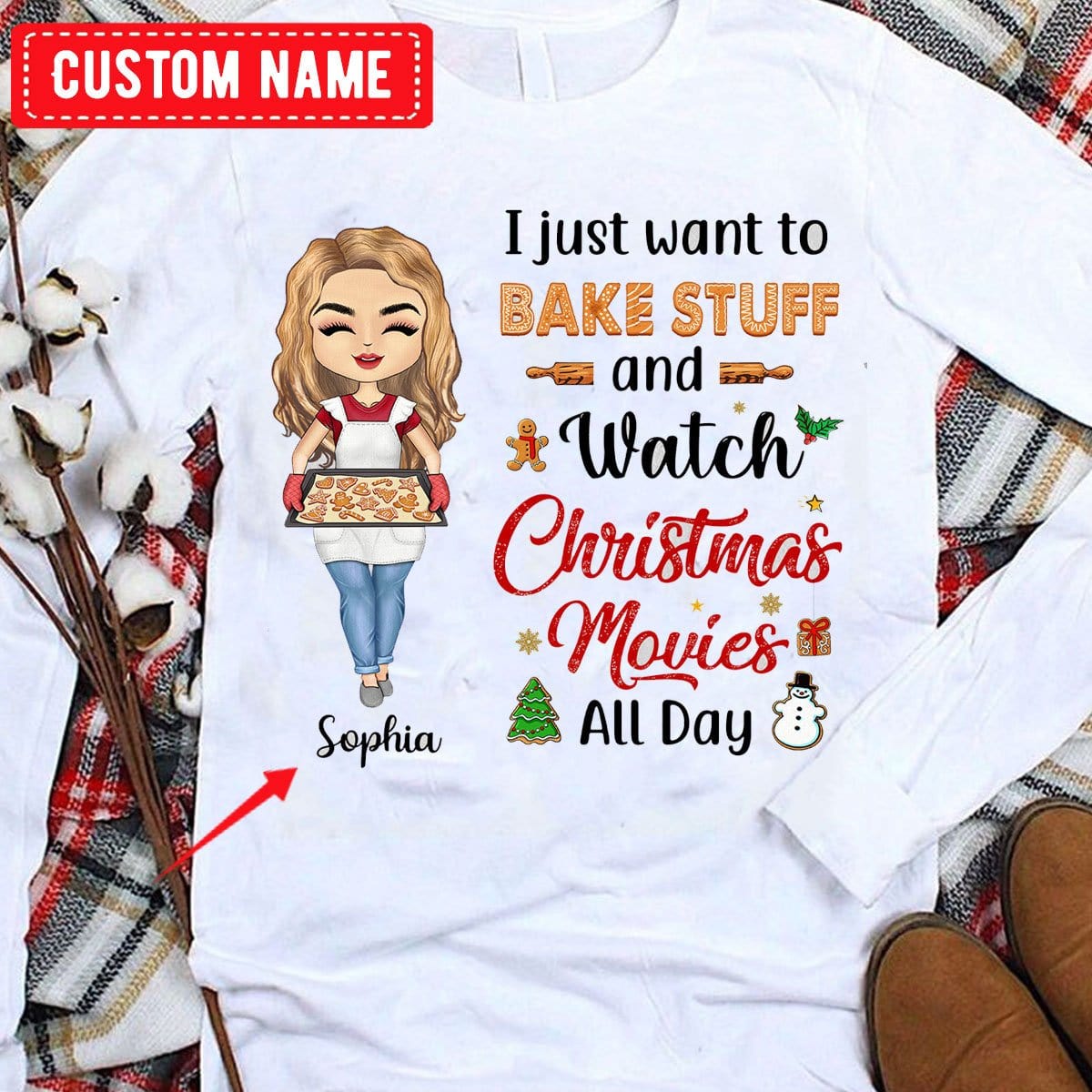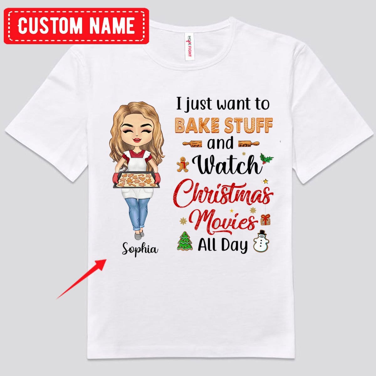 Solo quiero hornear cosas y ver películas navideñas todo el día Camisetas de repostería personalizadas