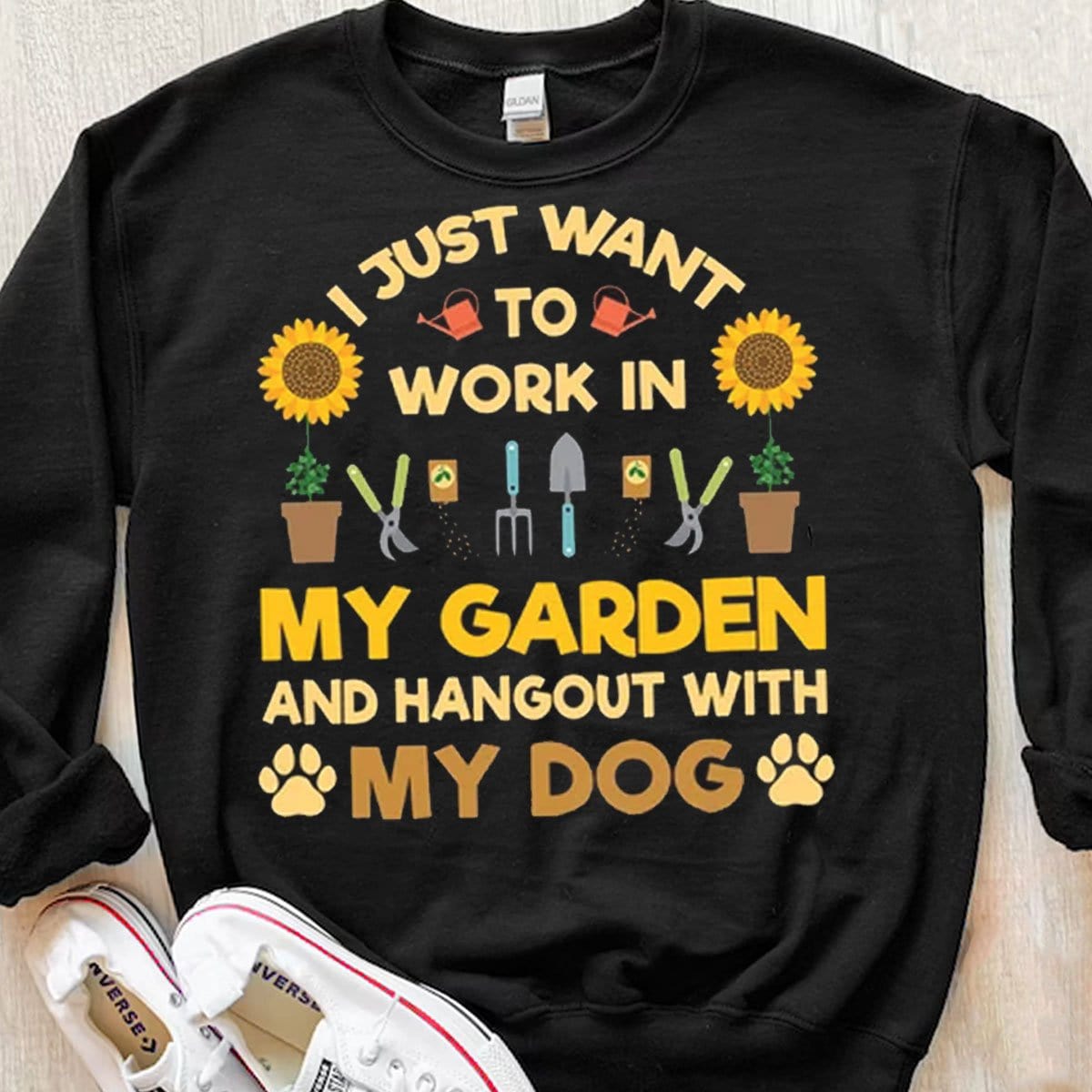 Solo quiero trabajar en mi jardín y pasar el rato con mi perro Camisetas de jardinería