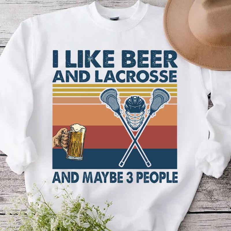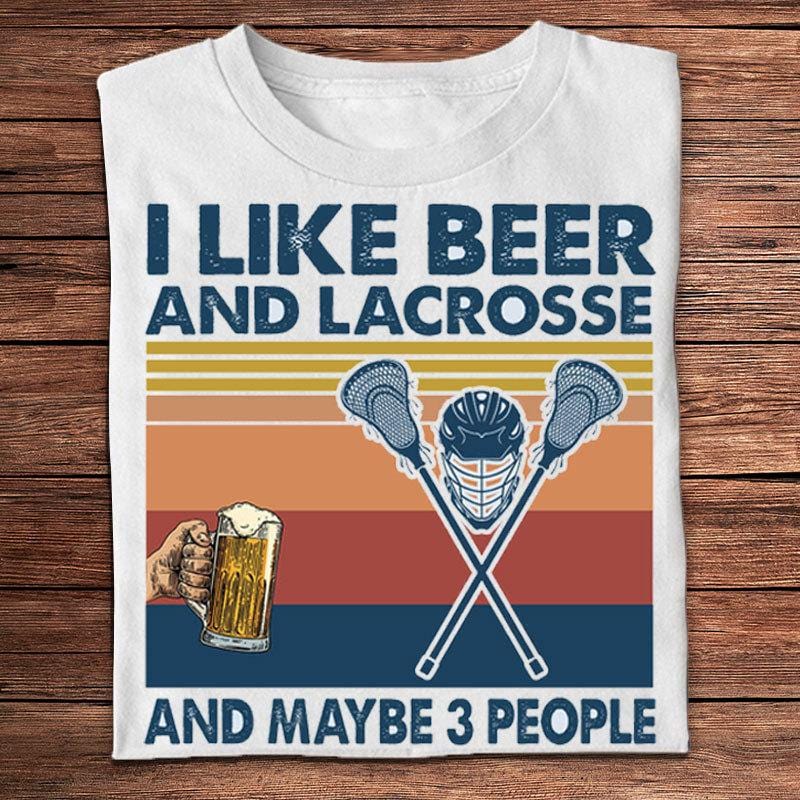 Me gusta la cerveza y el lacrosse y quizás 3 personas Camisetas vintage