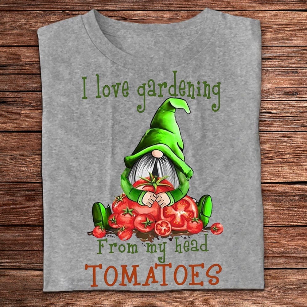 Me encanta la jardinería desde mi cabeza Camisetas de gnomos con tomates