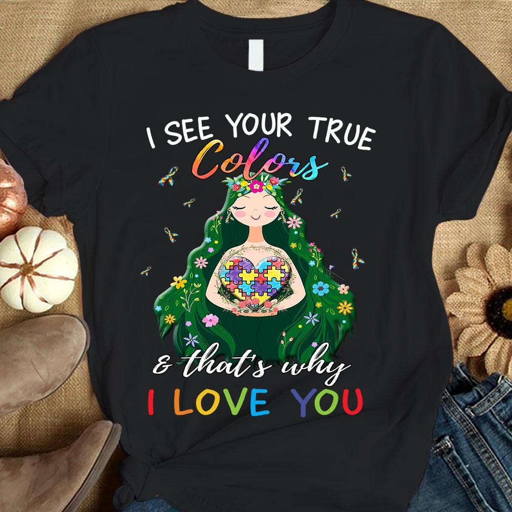 Veo tus verdaderos colores, por eso te amo, camiseta de niña con forma de corazón y pieza de rompecabezas, concienciación sobre el autismo