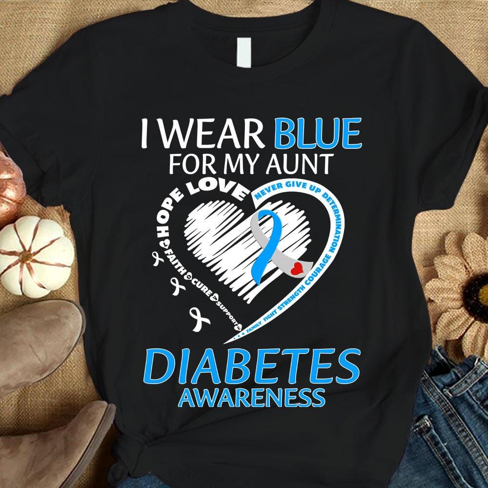 Llevo azul por mi tía, corazón de lazo, camiseta de apoyo a la concienciación sobre la diabetes