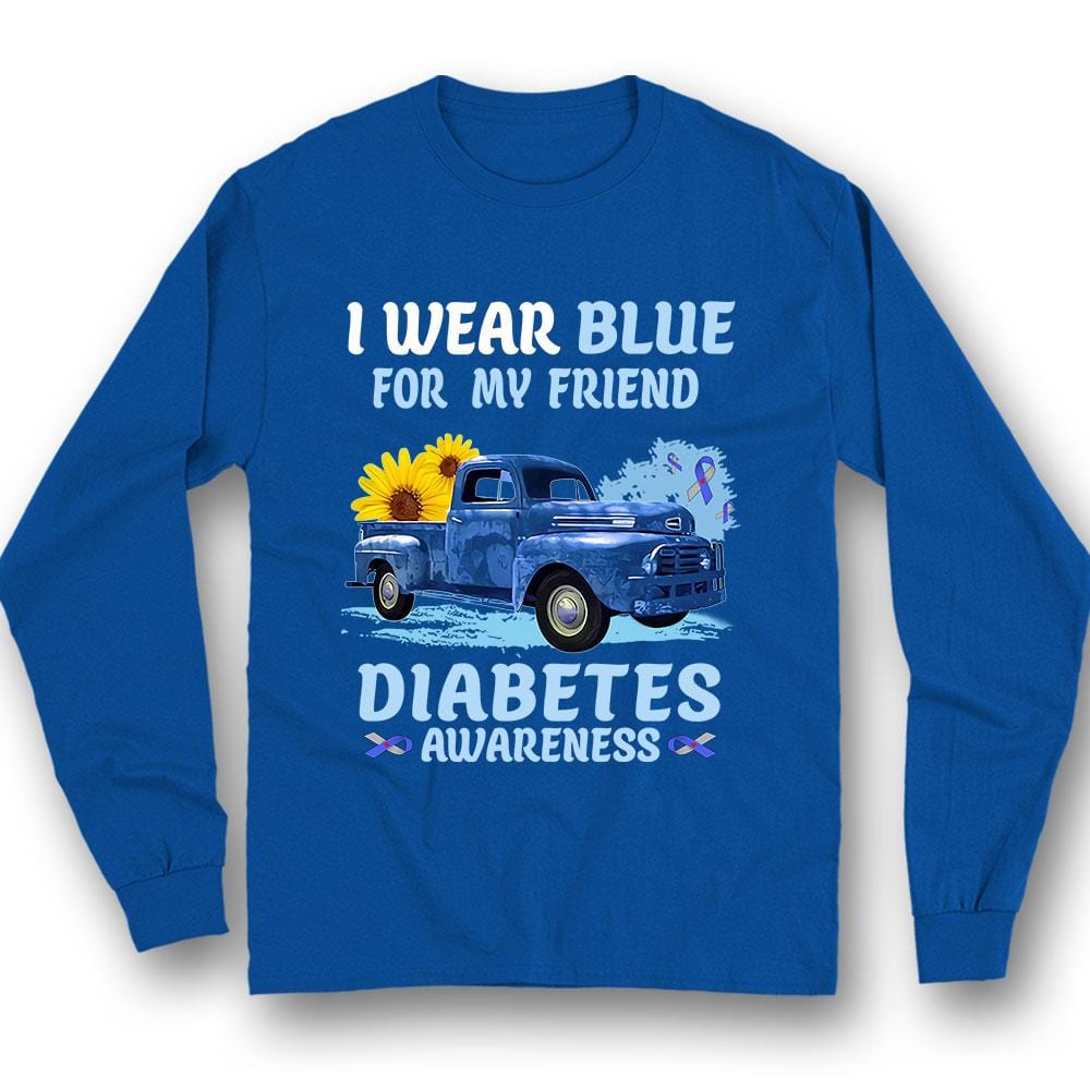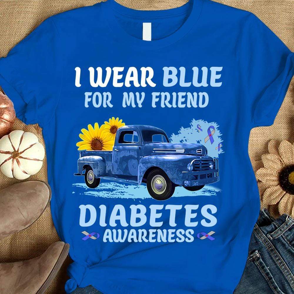 Camiseta de concienciación sobre la diabetes, me pongo azul para mi amigo con cinta de girasol en el coche