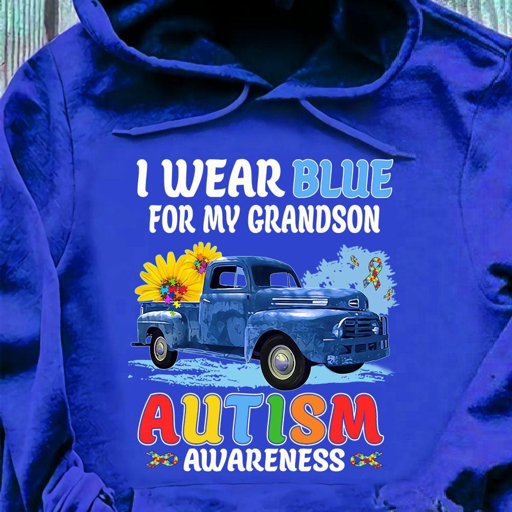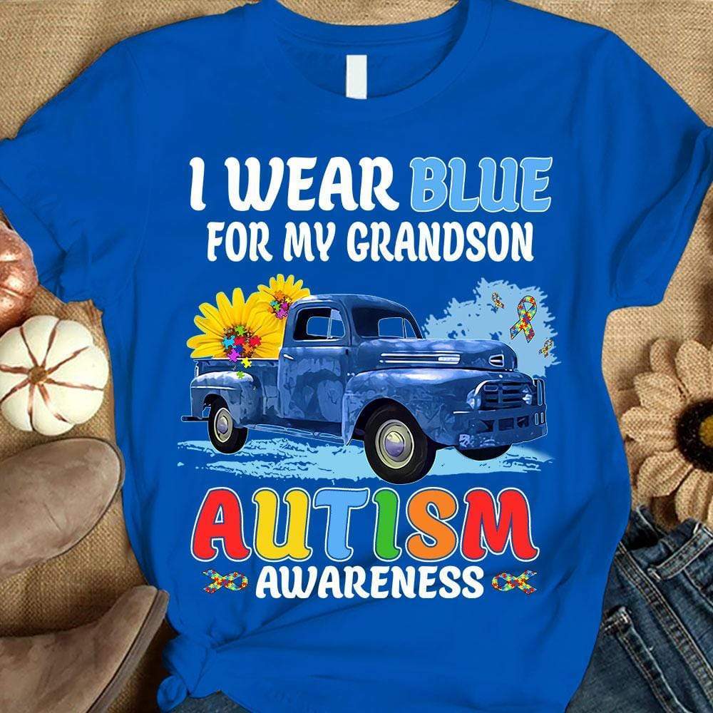 Camiseta de abuela autista, camiseta de abuelo autista "Me pongo azul por mi nieto", cinta de pieza de rompecabezas con girasol en el coche
