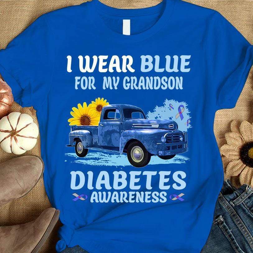 Camiseta de concienciación sobre la diabetes, me pongo azul por mi nieto, cinta con girasoles en el coche