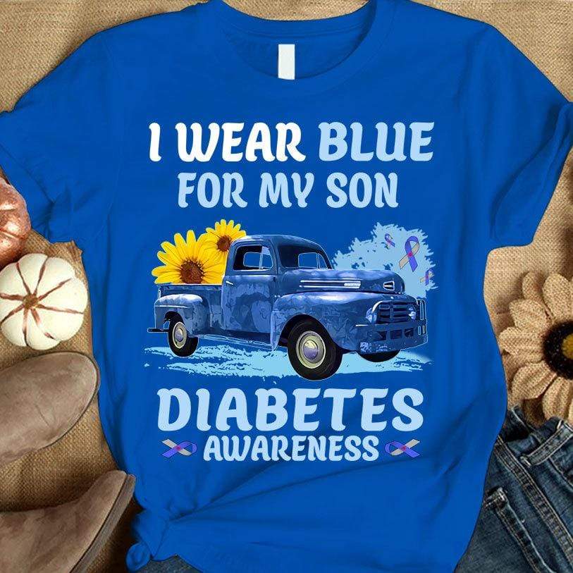 Camiseta de concienciación para madres con diabetes tipo 1, me pongo azul por mi hijo, cinta con girasoles en el coche