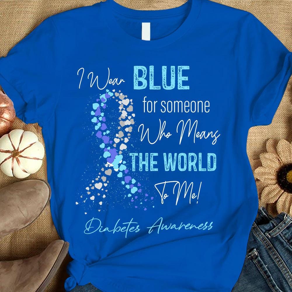 Me visto de azul por alguien que significa el mundo para mí, camiseta con lazo para concientizar sobre la diabetes