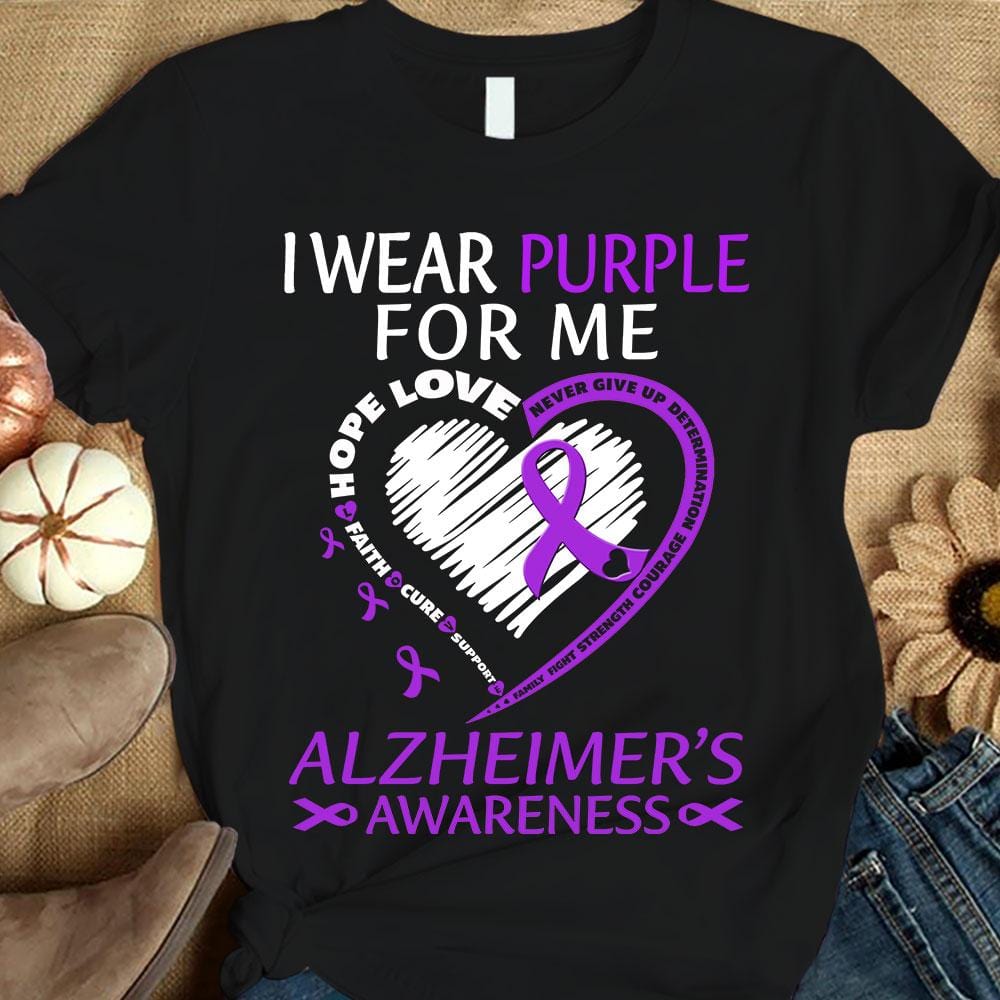 Por mí llevo morado, camiseta con lazo en forma de corazón y concienciación sobre el Alzheimer