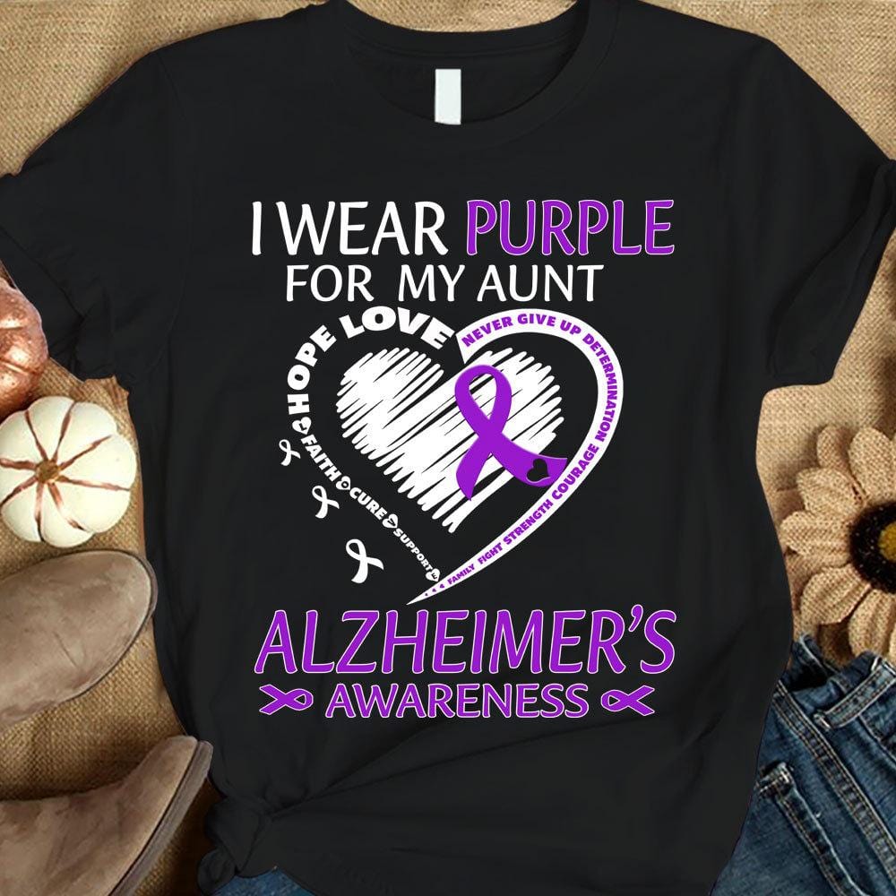 Llevo morado por mi tía, corazón con lazo, camiseta de concienciación sobre el Alzheimer