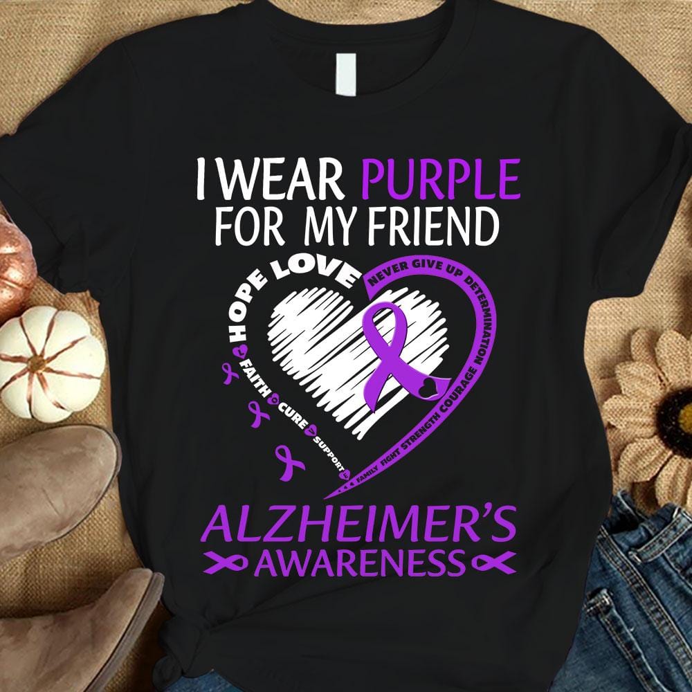 Llevo morado por un amigo, corazón de lazo, camiseta de concienciación sobre el Alzheimer