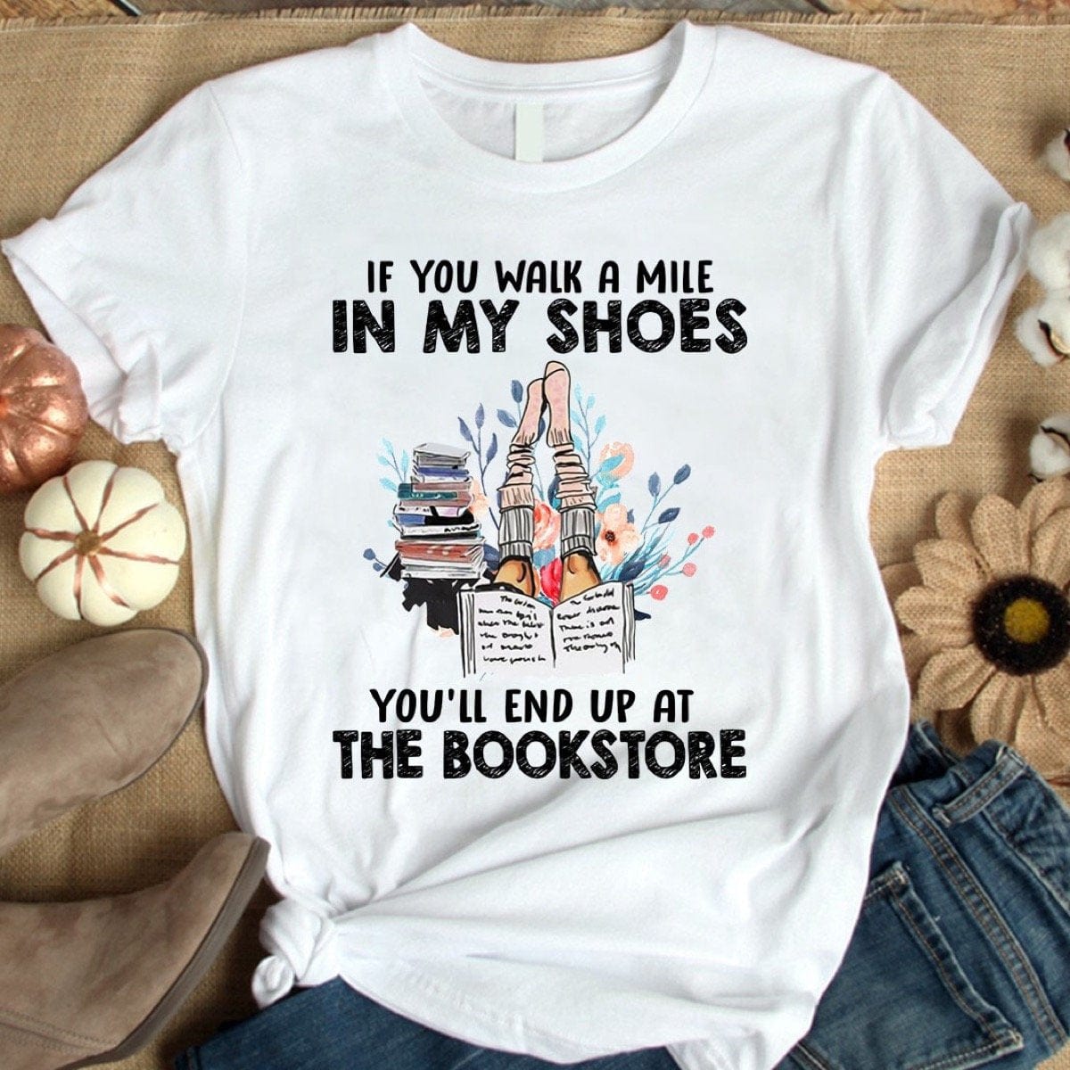 Si caminas una milla en mis zapatos, terminarás en la librería Camiseta, Camisetas para amantes de los libros
