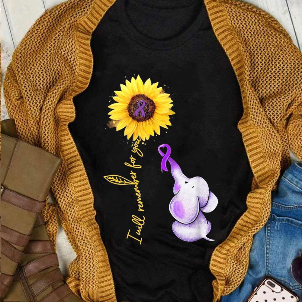 Lo recordaré por ti con elefante y girasol, camiseta de concienciación sobre el Alzheimer, camisetas sobre la demencia