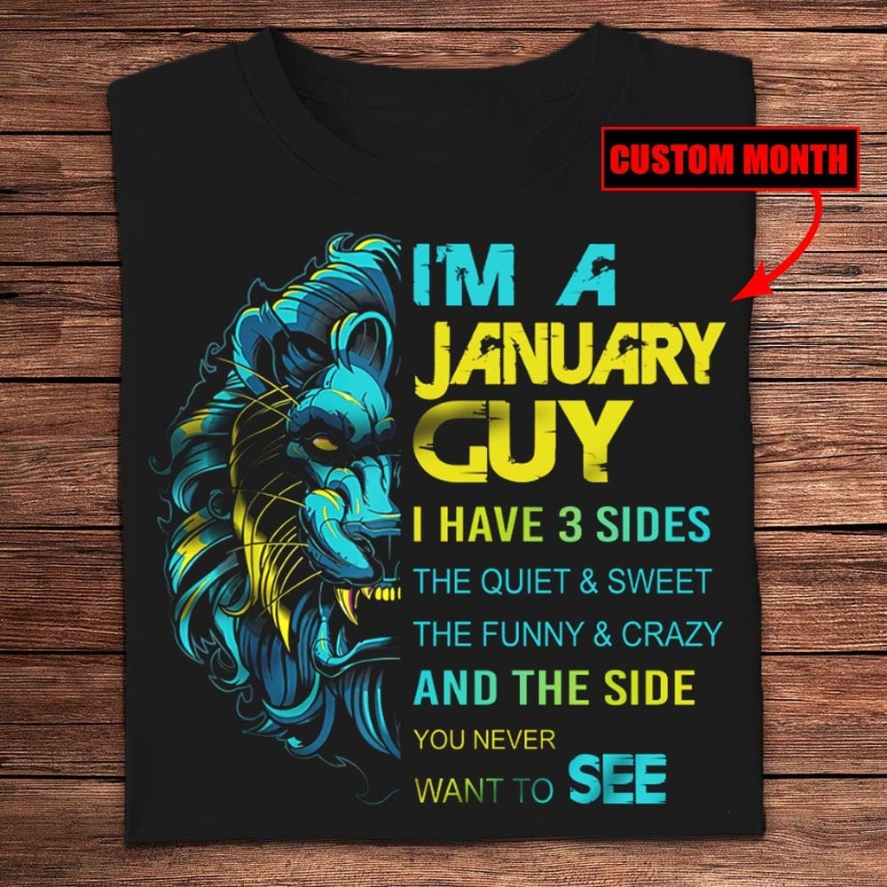 Soy un chico de enero, tengo 3 lados, camisetas de cumpleaños personalizadas de león