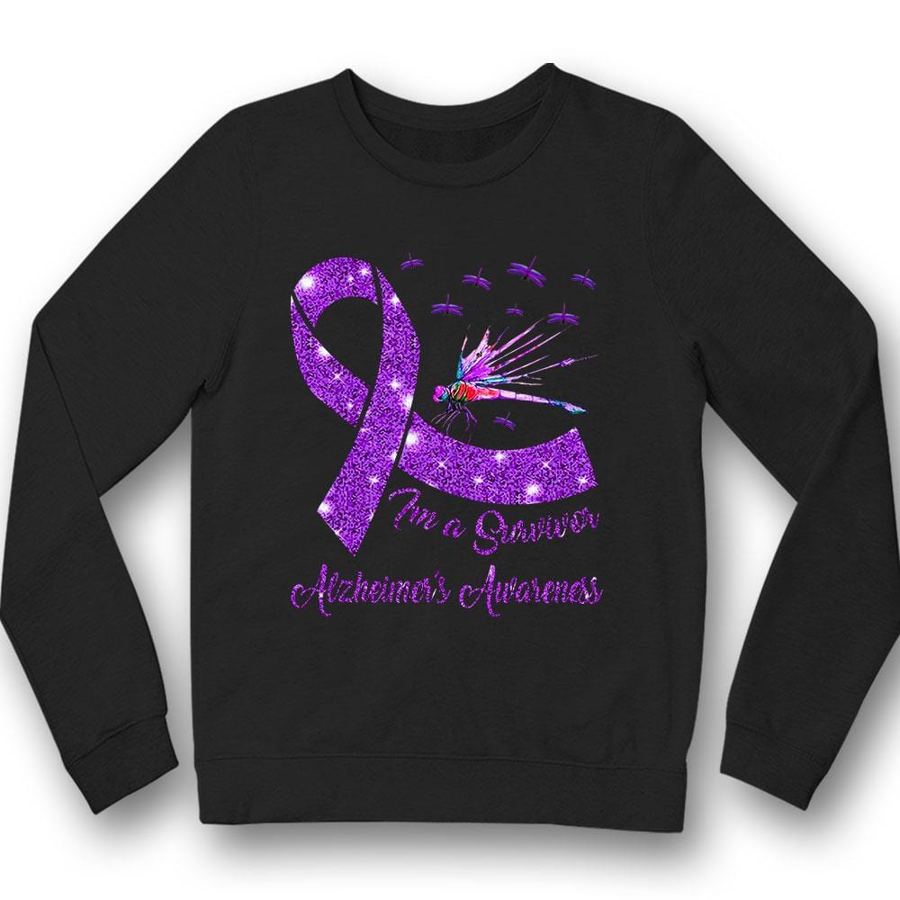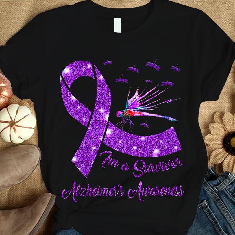 Soy un sobreviviente, camiseta de apoyo para la concienciación sobre el Alzheimer, libélula con lazo morado