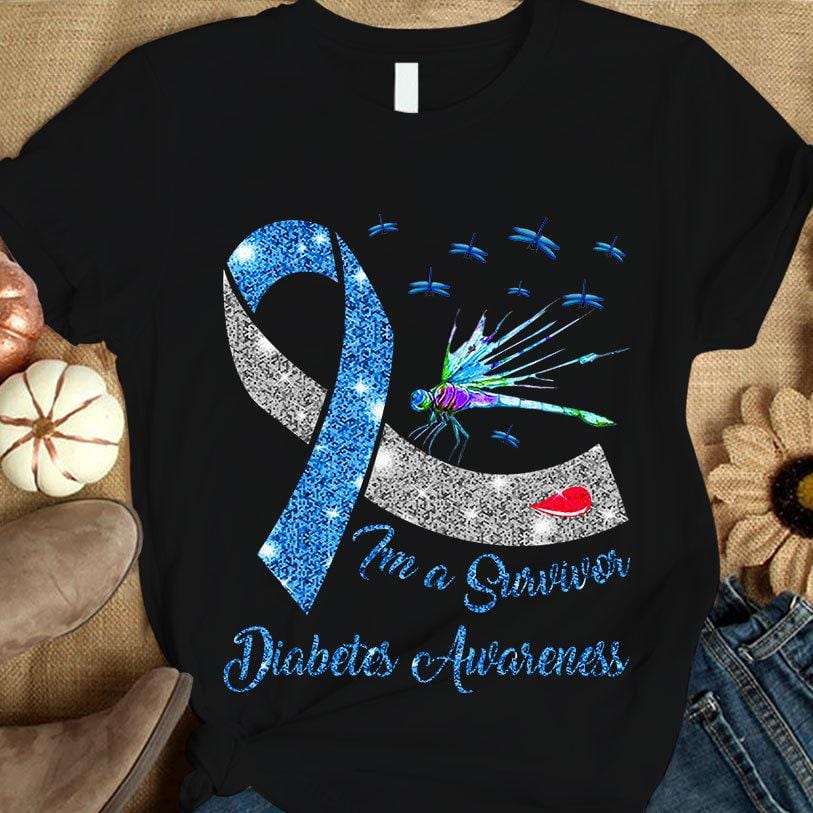 Soy un sobreviviente, camiseta de apoyo para la concienciación sobre la diabetes, cinta con libélula