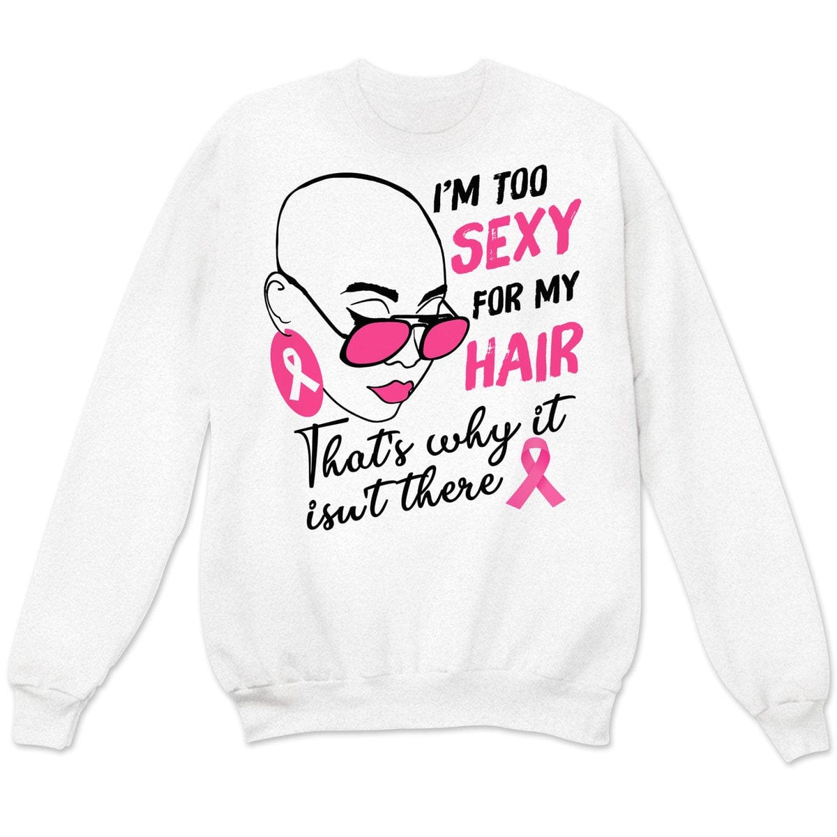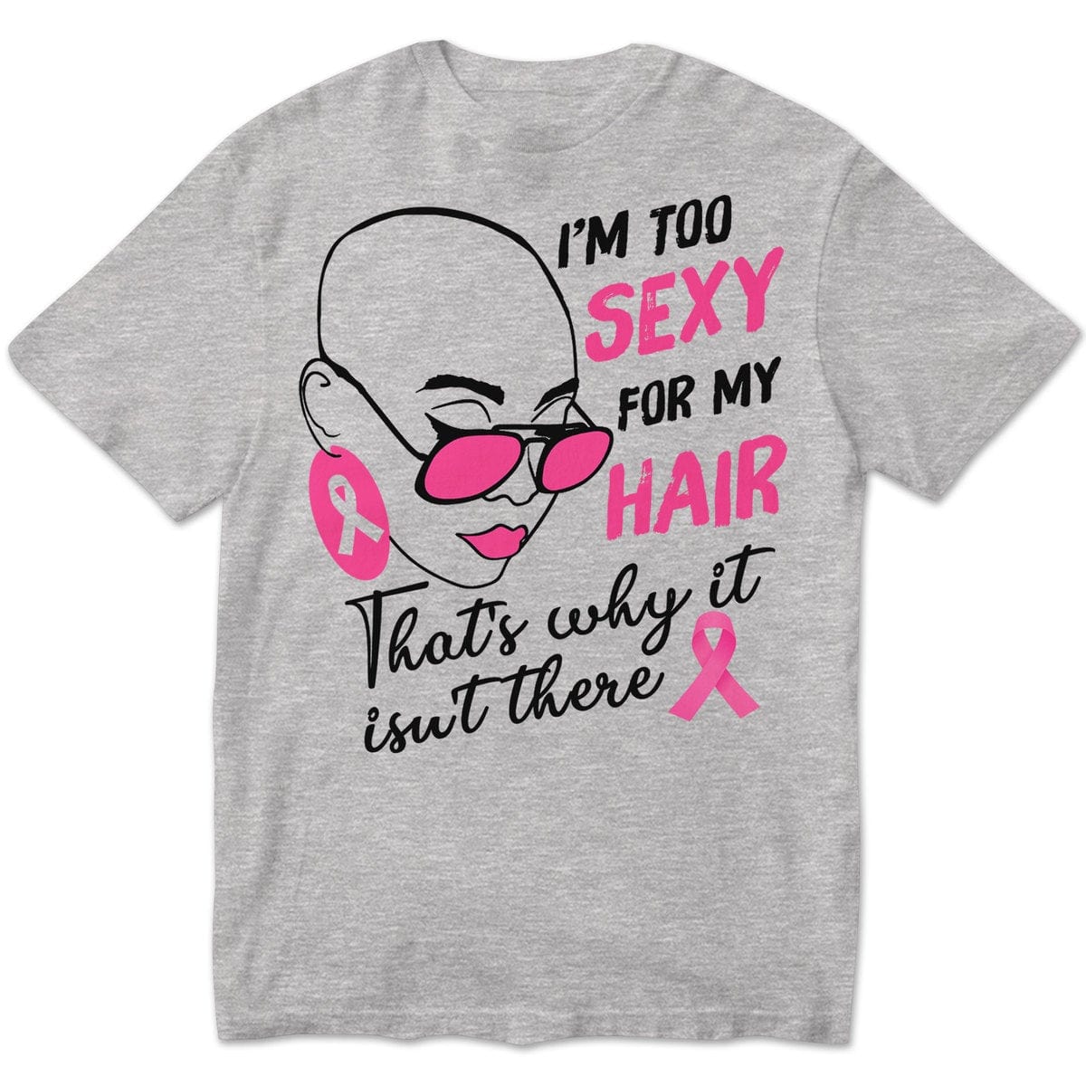 Camisetas de supervivientes de cáncer de mama Soy demasiado sexy para mi cabello con lazo rosa Mujer