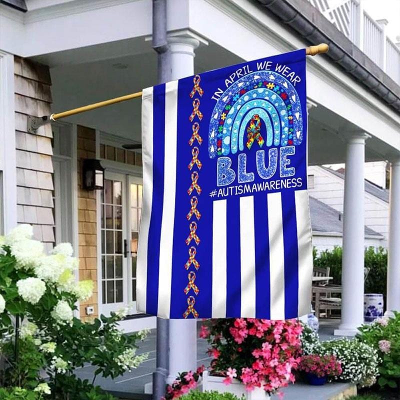 En abril usamos azul, lazo arcoíris, bandera de concienciación sobre el autismo, bandera de casa y jardín