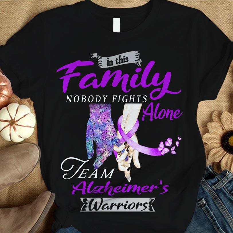 En familia nadie lucha solo, camiseta de concienciación del equipo guerrero del Alzheimer