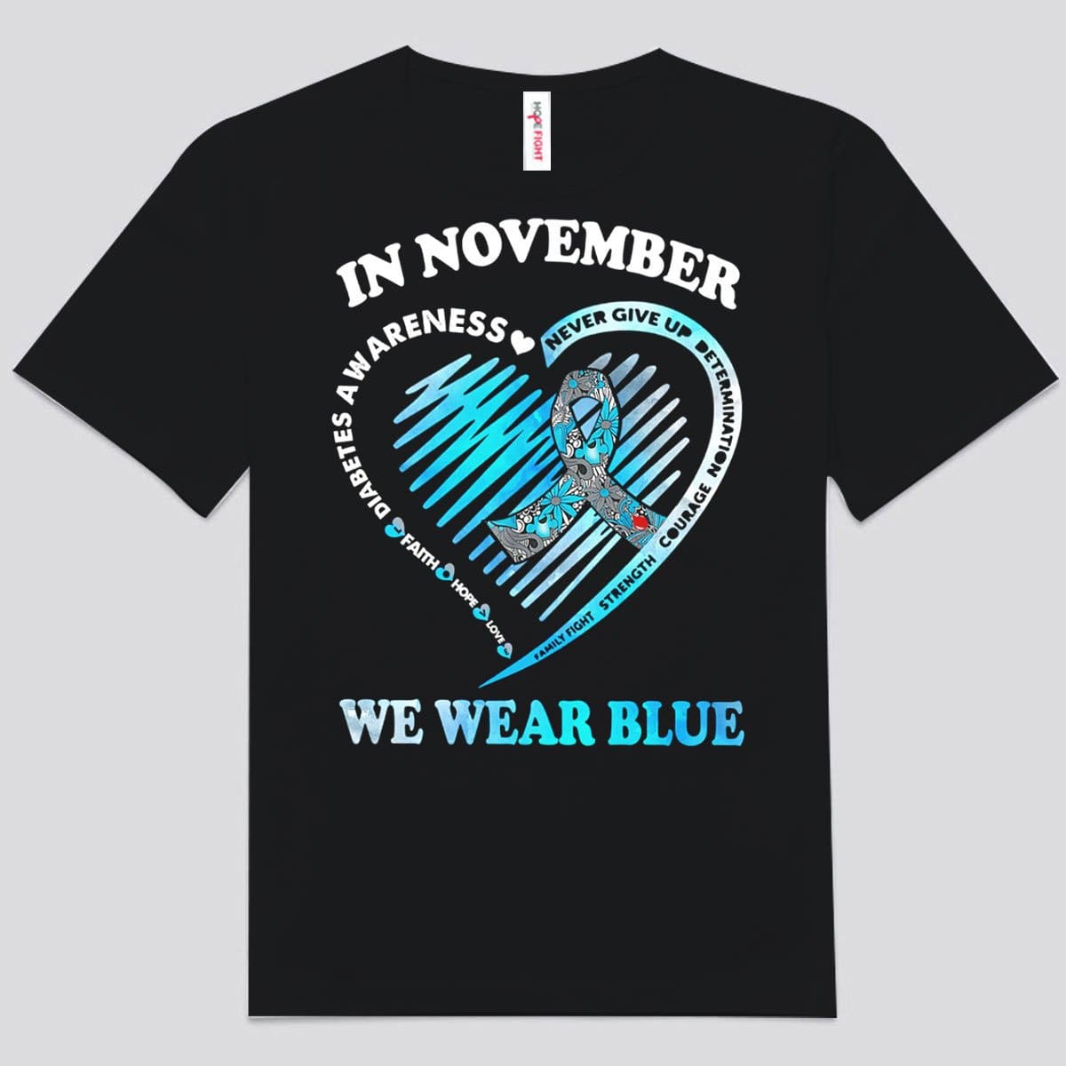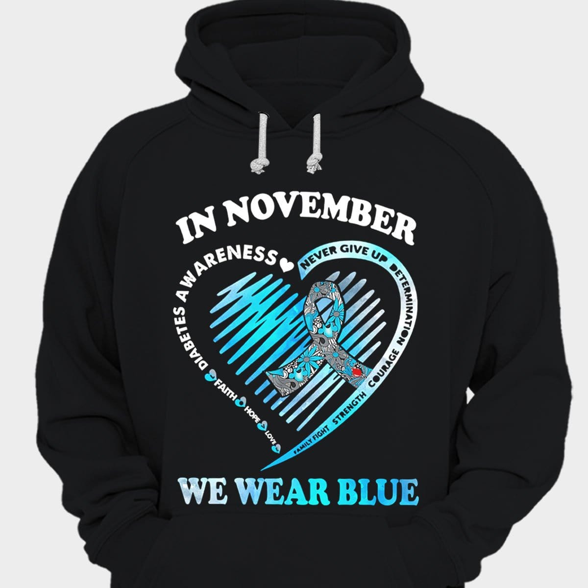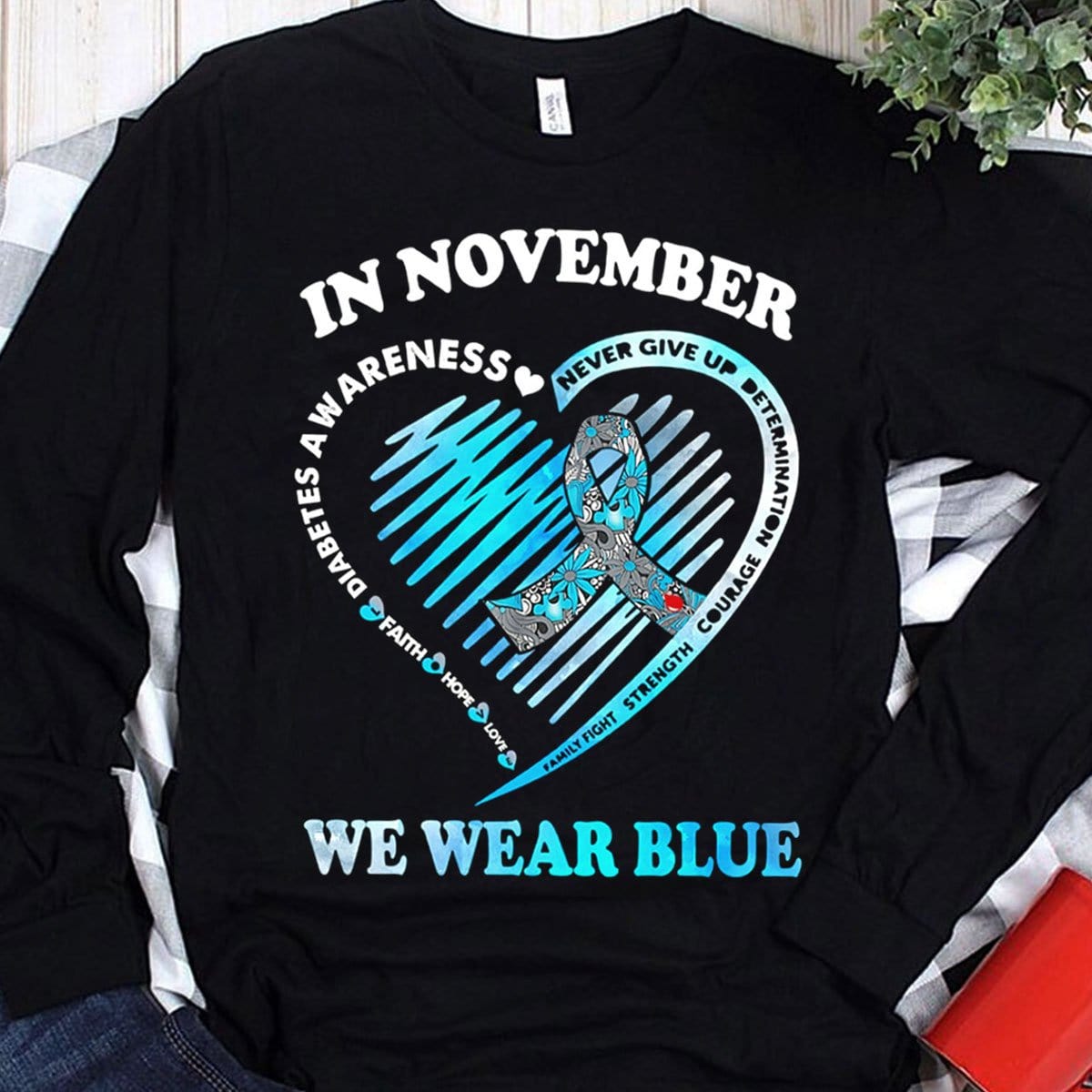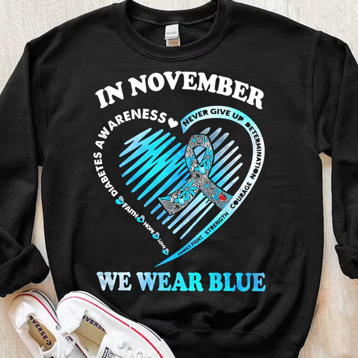 En noviembre usamos camisetas con el corazón y la cinta azul para la diabetes