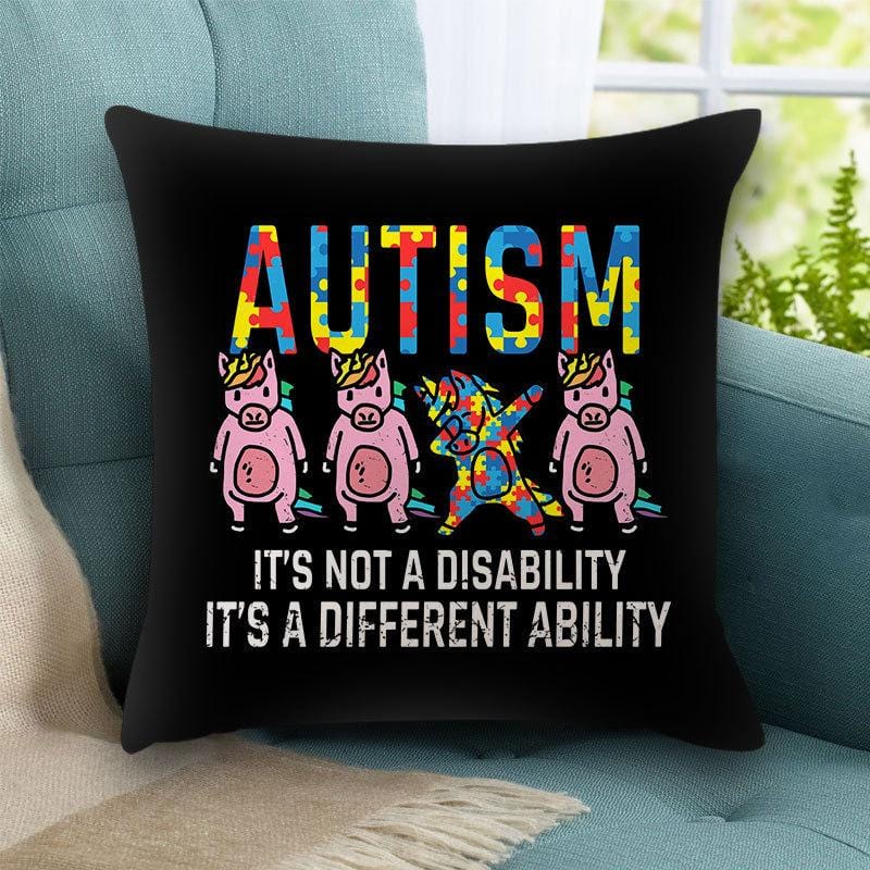 No es una discapacidad, es una habilidad diferente, Cerdo con piezas de rompecabezas, Almohada de concienciación sobre el autismo, Almohada de lino