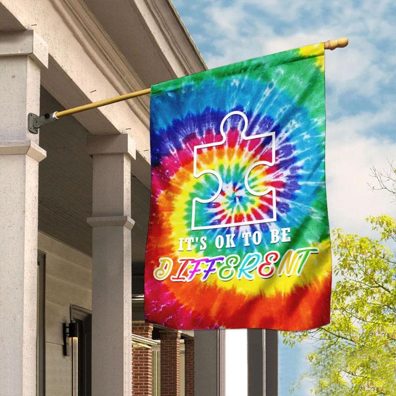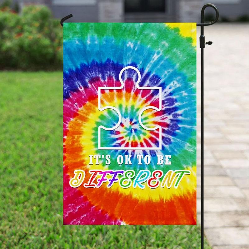 Está bien ser diferente, pieza de rompecabezas, bandera de concienciación sobre el autismo, bandera para la casa y el jardín