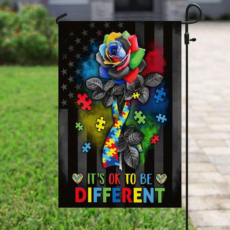 Está bien ser diferente, pieza de rompecabezas en forma de rosa, bandera de concienciación sobre el autismo, bandera para casa y jardín