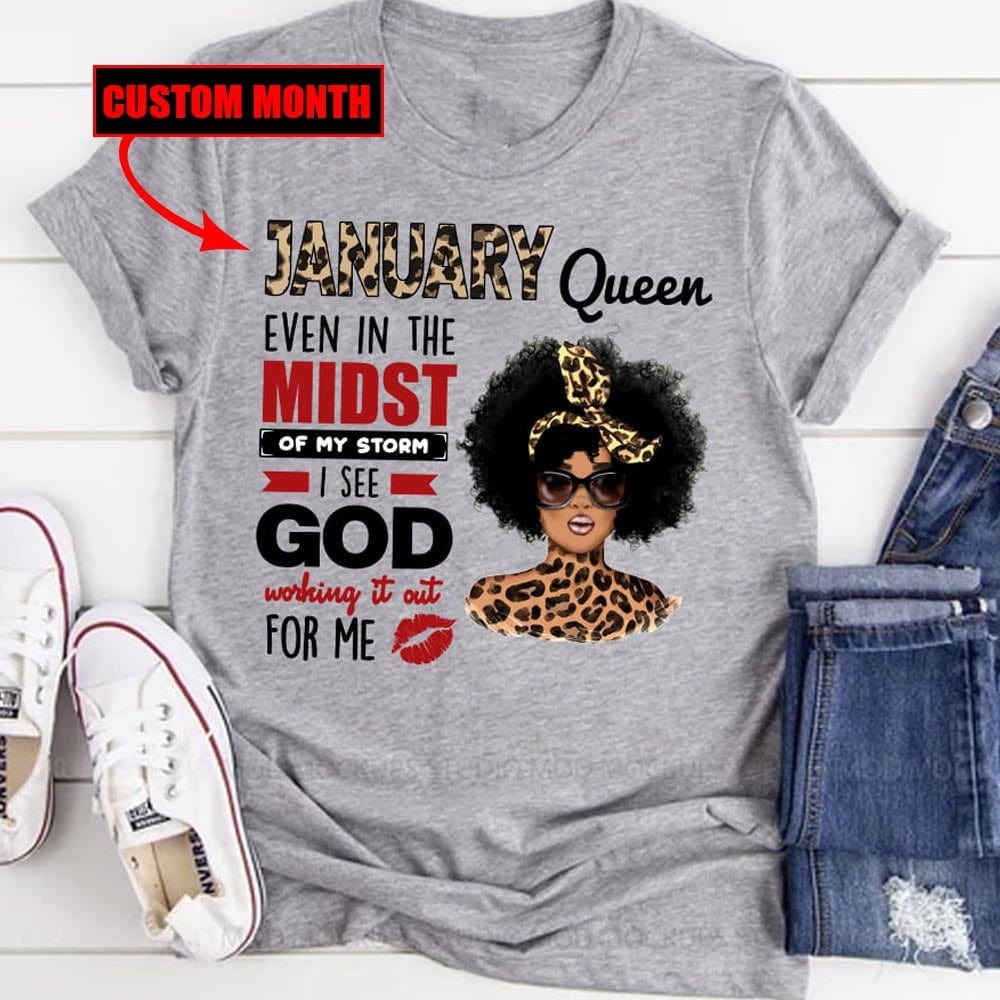 Camisetas de cumpleaños personalizadas para mujer con estampado de leopardo negro de la reina de enero