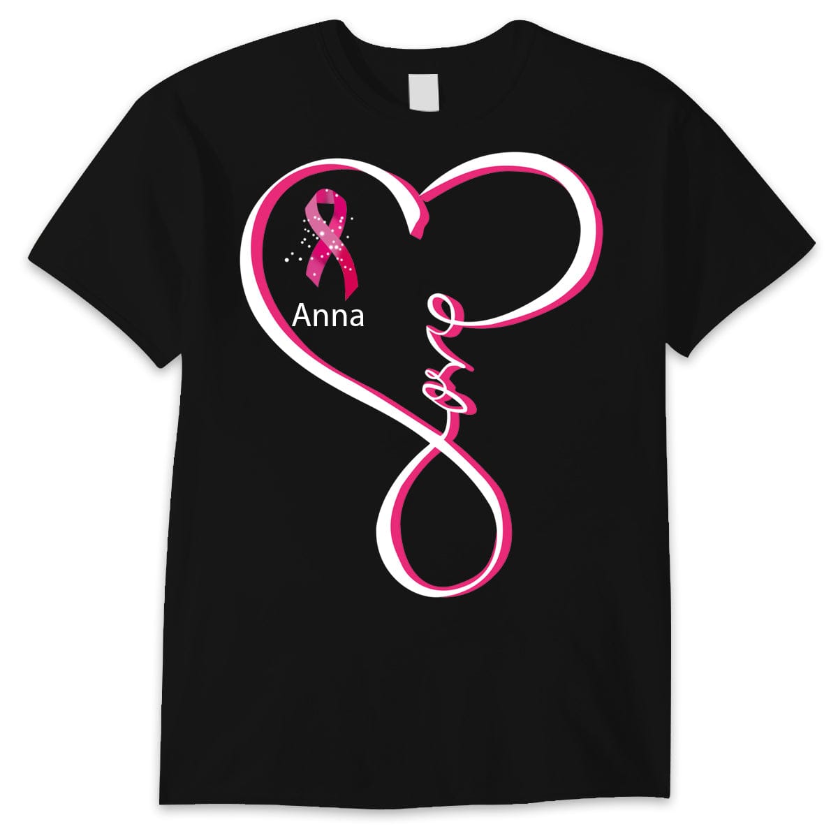 Camisetas personalizadas de cáncer de mama con corazón de lazo rosa