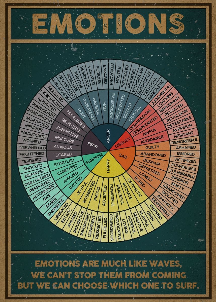Cuadro de la rueda de las emociones, póster de salud mental, lienzo
